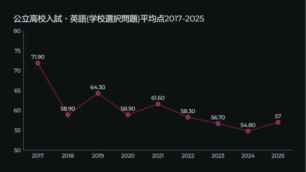 2025 57.0点(過去9年で7番目に高い平均点)